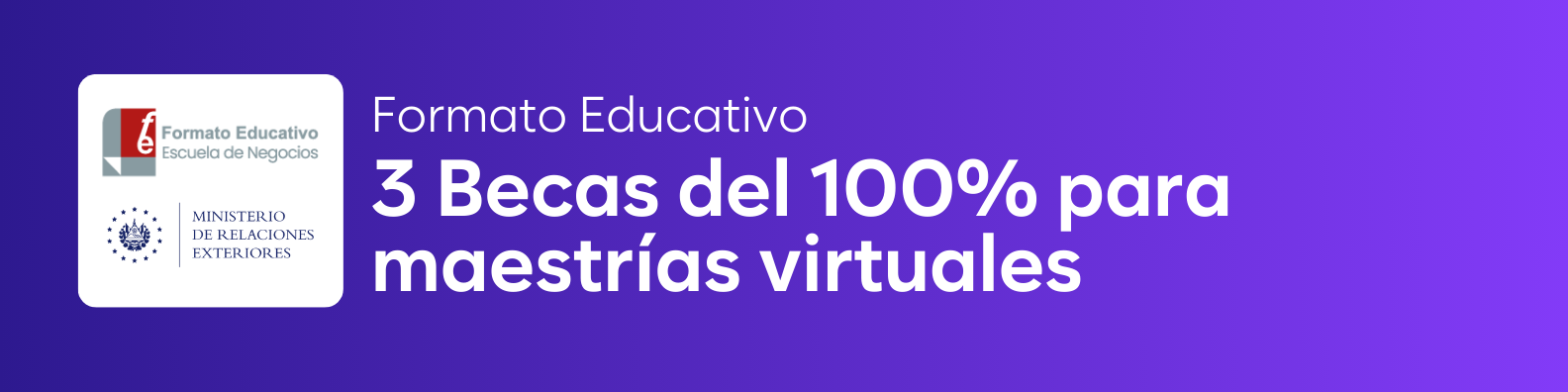 Convocatoria de 3 Becas Completas para maestrías virtuales dirigidas a profesionales salvadoreños. Esta iniciativa de Formato Educativo Escuela de Negocios busca democratizar el acceso a formación directiva de alto nivel, permitiendo a líderes locales especializarse en un entorno global y digital para transformar el tejido empresarial de El Salvador. Los programas están certificados por la Universidad de Vitoria-Gasteiz y cuentan con Harvard Business Impact como socio de contenido (Content Partner).