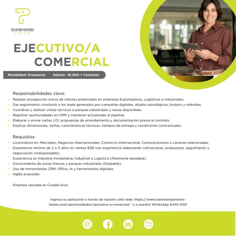 - Experiencia en Industria Inmobiliaria, Industrial o Logística (Altamente deseable).