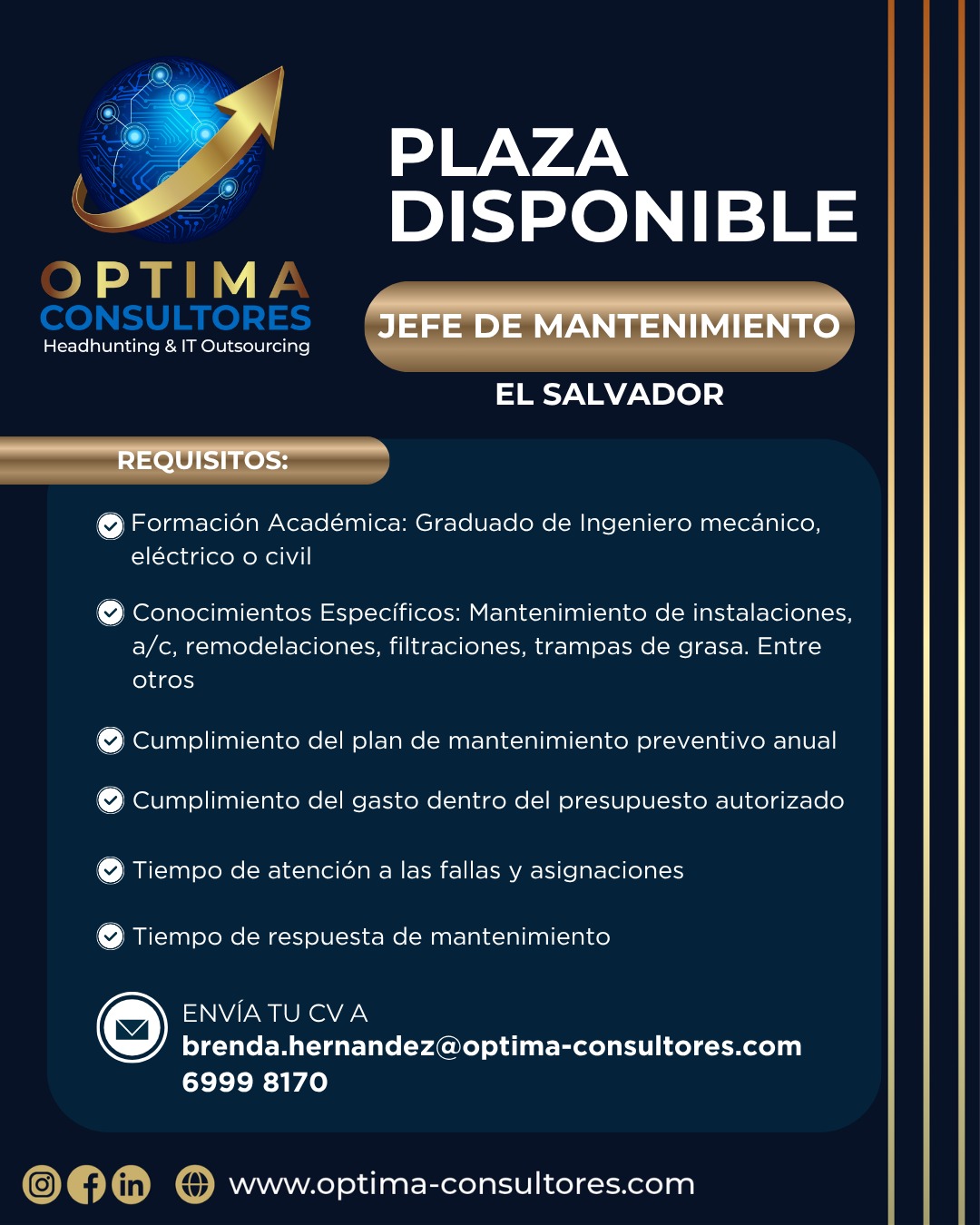 - Conocimientos Específicos: Mantenimiento de instalaciones, a/c, remodelaciones, filtraciones, trampas de grasa. Entre otros