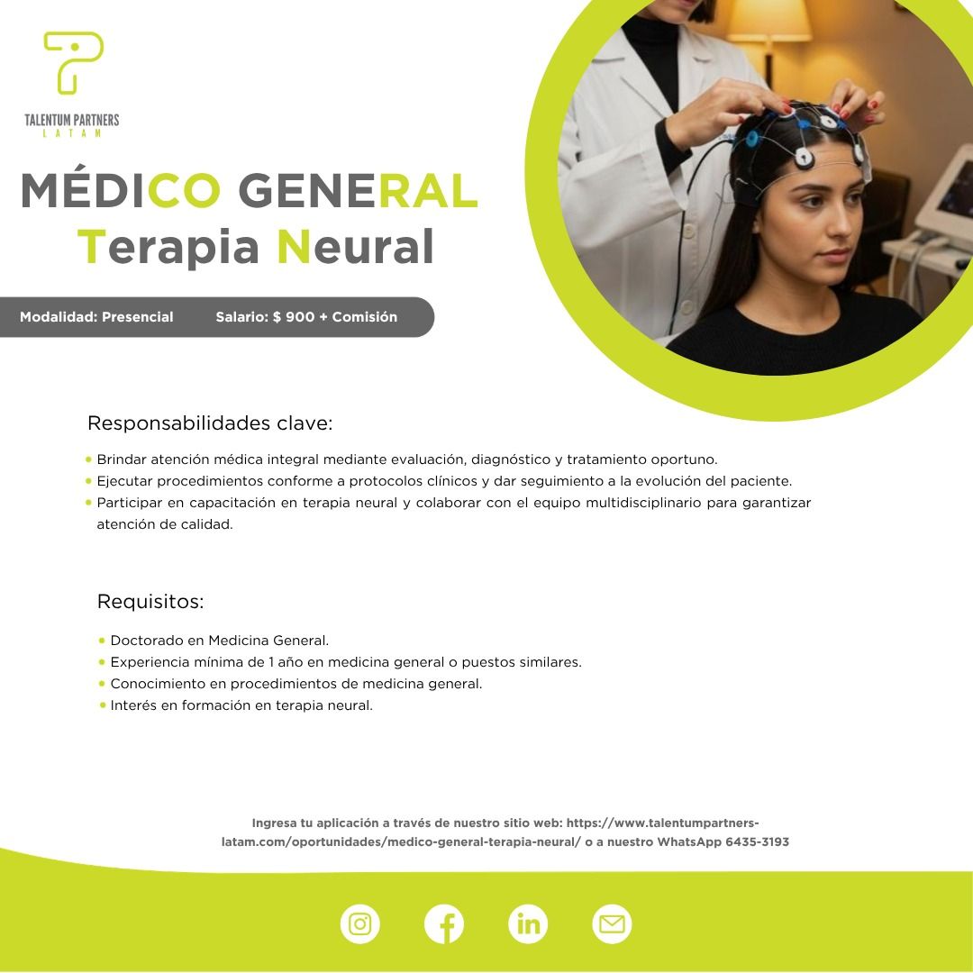 - Participar en capacitación en terapia neural y colaborar con el equipo multidisciplinario para garantizar atención de calidad.